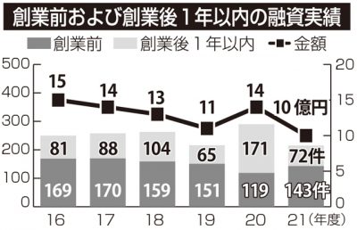 2022/07/12経済一般日本政策金融公庫宮崎、延岡支店国民生活事業が実施した2021年度の創業融資(創業前、創業後1年以内)について、融資を行った企業数が前年度比25・9%減の215社となったことが、両支店のまとめで分かった。融資額は31・6%減の10億円。企業...