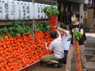 2022/07/09県内一般ニュース日之影町特産のホオズキを販売する「ほおずき市」(日之影町主催)が8日から東京都港区の朝日神社で始まった。大きく鮮やかな朱色の実が参道の両脇を彩り、にぎわっている。9日まで。 関東地方の7月盆に合わせて町産ホオズキをPRしようと開催...