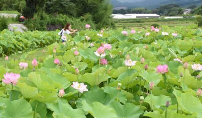 2022/07/05地域の話題三股町・勝岡小前の湿田で、ハスが見頃を迎えている。訪れた見物客らは、白や薄いピンクの花を写真に収めながら散策を楽しんでいる。 同町樺山の才田工務店社長、才田正弘さん(75)が、所有地や借用地を使って2018年ごろから毎年植栽し、維...