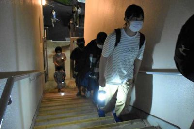 懐中電灯手に経路確認 宮崎市・島山地区で夜間避難訓練