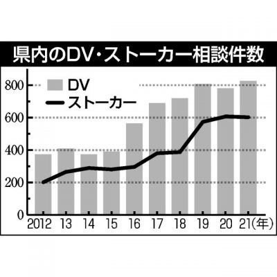 2022/06/19県内一般ニュース県警に寄せられた2021年のドメスティックバイオレンス(DV)の相談件数が、過去最多の827件(前年比46件増)に上ったことが、県警のまとめで分かった。ストーカーの相談件数も、過去2番目に多い602件(同5件減)で高止まりしている。県警は...
