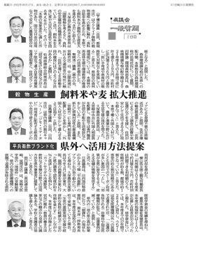 2022/06/17紙面から/2日目/穀物生産/飼料米や麦 拡大推進/平兵衛酢ブランド化/県外へ活用方法提案 山下博三議員(自民、都城市区)はウクライナ情勢の穀物価格への影響に触れ「食料自給率を高めるため、本県でも飼料米など穀物の生産拡大を進めるべきだ」と訴え...