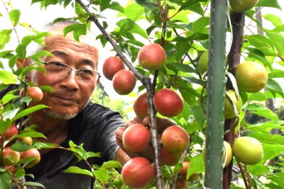 2022/06/11地域の話題ウメの栽培が盛んな都農町で、希少品種「露茜」が13日にも収穫を迎える。成熟するにつれて皮や果肉が赤く染まるのが特徴で、立野地区の6戸が昨年を上回る1トン超を出荷する予定。 露茜はウメとスモモを掛け合わせた品種。栽培は難しいがフルー...