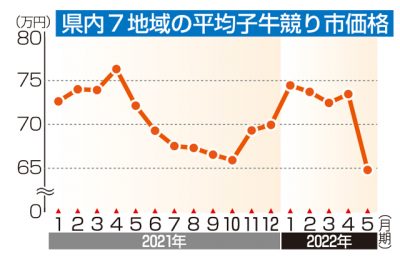2022/06/08社会news県内7市場で行われる子牛競り市の平均価格が、5月以降急落している。ロシアのウクライナ侵攻などに伴う飼料価格の高騰などを受け、県内外の肥育農家の購買意欲が低下しているのが要因。7市場の平均価格は1~4月期の70万円台前半から9万円近く下落し...
