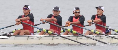 妻 男子かじ付き4人スカル接戦制す 県高校総体最終日