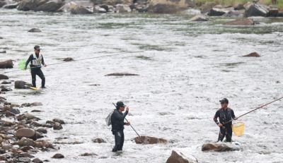 県内アユ漁解禁 愛好家ら駆け引き楽しむ