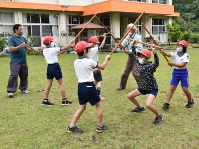「エイヤサー」剣棒踊り練習 運動会向け大窪小児童 日南