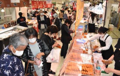 2022/05/12経済一般「初夏の北海道物産展」は11日、宮崎市の宮崎山形屋新館5階大催場などで始まった。新型コロナウイルス対策として新館地階、本館1階の3カ所に会場を分散し、通路幅を広げるなどして開催。初日となった会場には多くの買い物客が訪れ、目当ての商品を買い...