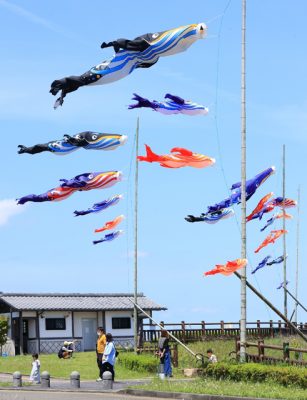 2022/05/01地域の話題宮崎市の佐土原総合文化センターで「くじらのぼり」20匹が春風に揺られ、悠然と空を泳いでいる。5日の「こどもの日」に向けた取り組みで、「たくましく育って」との願いが込められている。掲揚は7日まで。 佐土原町商工会青年部(齋藤和幸部長...