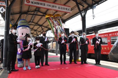 2022/05/01きょうの出来事延岡市のJR延岡駅の開業100周年を祝い、JR九州は1日、同駅で記念イベントを開いた。市内の児童2人が一日駅長を務めた出発式や運転シミュレーター体験などがあり、多くの市民が来場。節目を祝った。 出発式では、同社宮崎支社の中嶋敬介支...
