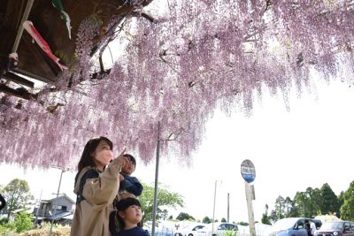 2022/04/20地域の話題串間市本城のミニ動物園「串間いちご畑ゆめ牧場」(鬼塚修二代表)で、フジの花が見頃を迎えている。白と紫の花が鈴なりに咲き、遊びに来た家族連れらが見入っている。 同牧場は敷地内を彩る花の栽培にも力を入れており、フジは12年前に駐車場の...