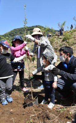 2022/04/15県内一般ニュース日南市南郷町の製材業・吉田産業(吉田利生社長)のグループ3社は9日、同市南郷町榎原甲の同社社有地で植樹祭を開いた。社員や家族ら96人が参加し、ソメイヨシノやヤマザクラ約80本を植栽した。 同社は地球環境保全や温暖化防止の一助として...