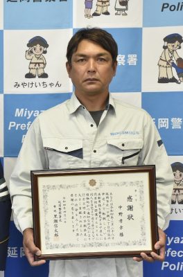 2022/04/15県内一般ニュース行方不明者の早期発見、保護に貢献したとして、延岡署は8日、延岡市北一ケ岡、会社員中野孝幸さん(44)に署長感謝状を贈った。 同署によると、3月28日午後4時20分ごろ、同市の80代男性が自宅からいなくなったと家族からの届け出があり...