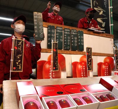 完熟マンゴー「太陽のタマゴ」初競り 2玉過去最高額50万円で落札