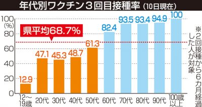 県内50代以下の接種率低迷 新型コロナワクチン3回目、全国平均下回る
