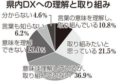 2022/04/09経済一般DX(デジタルトランスフォーメーション)推進について、県内企業の3割強が前向きに捉えていることが帝国データバンクの調査で分かった。九州・沖縄地区では37・6%が前向きで、取り組み内容は「オンライン会議設備の導入」が5割弱で最多だった。 ...