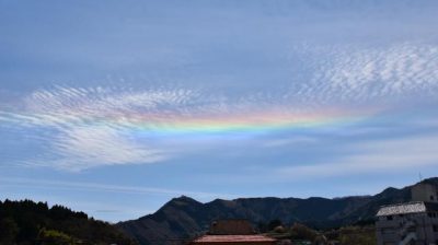 虹色の帯 大空に 高千穂で「環水平アーク」観測