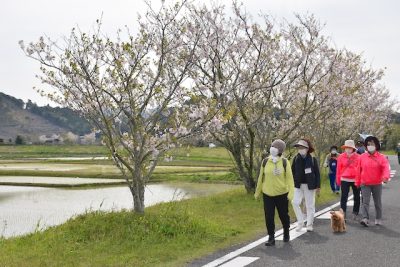 2022/04/05地域の話題串間市ウオーキングクラブ(中川研児代表)は3日、同市の福島川堤防沿いなどで花見を兼ねたウオーキングを行った。市内外の約30人が、桜や風景を眺めながら健康づくりを楽しんだ。 同クラブは毎月ウオーキングイベントを実施していたが、新型コ...