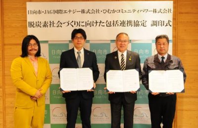 2022/03/29経済一般日向市に工場を置く男性用高級下着ブランドTOOT(トゥート、東京)と食品工場向け機械・設備設計などを手掛けるMFE HIMUKA(日向市)は、JAG国際エナジー(東京)と共同出資で地域新電力会社「ひむかコミュニティパワー」(日向市)を設立...