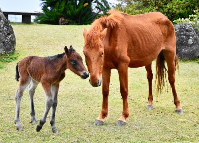 母馬に寄り添う、かわいらしい姿 都井岬で「春駒」誕生