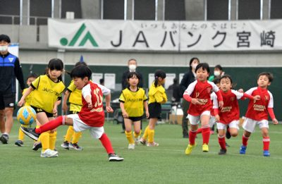 2022/03/27県内一般ニュースJAバンク宮崎杯宮日キッズサッカー大会2022(宮崎日日新聞社主催、JAバンク宮崎共催、モルテン協賛)は26日、宮崎市のひなた木の花ドームであった。県内の幼児26チーム、260人が出場。ボールを追って元気いっぱいに駆け回り、プレーを楽しん...