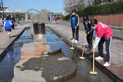 芸術作品触れ緑道清掃 都城泉ケ丘高生