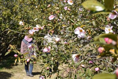 赤やピンク色とりどり 椿山森林公園でツバキ咲き始める
