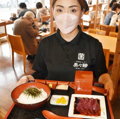 2022/03/05トピックnews地元で水揚げされた新鮮な初ガツオを味わえる「南郷かつおめしフェア」(南郷どれさかな料理フェア実行委主催)が、日南市南郷町の飲食店5店舗で開かれている。かつおめしを550円と手頃な価格で提供している。31日まで。 同市は近海カツオ一...