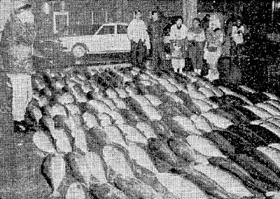 2022/02/17懐かしシリーズ南郷町の大島沖でこのところ寒ブリの大漁が続き、連日4千~5千キロの水揚げ。南郷漁協の市場は久しぶりに“ブリ景気”で活況を見せている。 16日朝、水揚げされた寒ブリは300尾。同町の新堀水産が大島沖に入れているブリ網で取れたもので、...