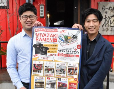 2022/02/17トピックnews県内のラーメン文化を盛り上げようと、宮崎市内の若手経営者らが「宮崎ラーメン協議会」を設立した。同市内に店を構える7社が参加。今年5月には同市で県内の店舗が集う「ラーメンフェスタ」も計画しており、メンバーらは「『宮崎ラーメン』を全国区にした...