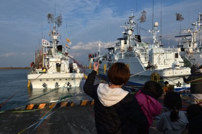 目井津港から漁船出発 日南カツオ一本釣り漁始まる