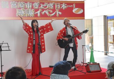 2022/02/11地域の話題2021年のギョーザ購入額と購入頻度で宮崎市が日本一となったことを記念し、同市の宮崎山形屋四季ふれあいモールで11日、感謝イベントが開かれた。22のギョーザ製造・販売事業者でつくる同市ぎょうざ協議会が主催。「宮崎ギョーザ」応援ソングのライ...