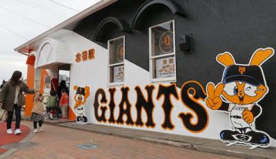 JR木花駅ジャイアンツカラーに 完成祝いお披露目式
