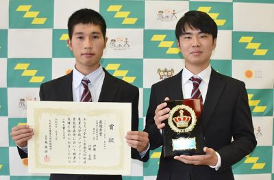 2022/01/28地域の話題2021年度の九州地区農業大学校プロジェクト・意見発表会(12、13日、リモート開催)で、高鍋町・県立農業大学校(戸高朗校長、110人)の農学科(野菜専攻)2年、伊藤吉平(20)、河野史弥(20)さんが、プロジェクト発表養成部門で最優秀賞...