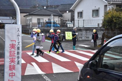 通学路の安全確保へ えびのに「スムーズ横断歩道」設置