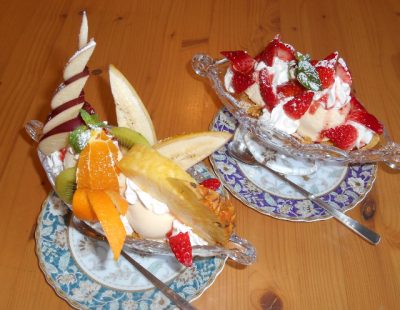 2022/01/08スイーツスポット旬のフルーツたっぷり 1979(昭和54)年創業の喫茶店「英国屋」(日南市)。現在は猪崎弘則(52)、幸美(48)さん夫婦と、幸美さんの母・藤本藤代(71)さんの3人で営む。今回紹介するのは、ほぼ開業時から提供している「フルーツパフ...