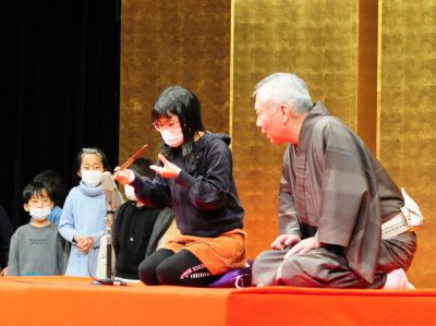 出ばやしや所作学ぶ 門川で親子落語教室