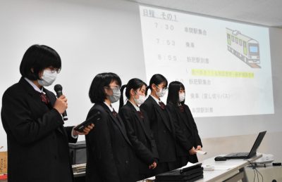 2021/12/29地域の話題JR日南線の利用促進につなげようと、串間市・福島高(那須雅博校長、194人)地域創生クラスがイベント企画案の発表会を、同校で23日に開いた。2年生21人が、市内外の観光地を巡る列車を活用したツアーなどを提案した。 地域の課題を探る...