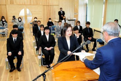2021/12/26きょうの出来事美郷町で26日、2021年度の新成人を対象にした成人式が、県内のトップを切って開かれた。 新型コロナウイルス感染症拡大の影響で、参加者を県内在住者に限定して開いた。同町の西郷ニューホープセンターであった式典には新成人43人のうち男...