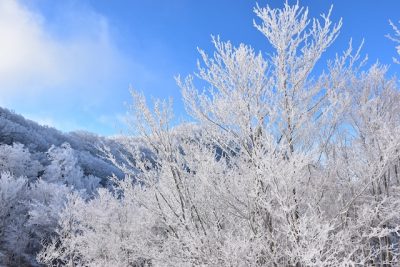 県内厳しい冷え込み 五ケ瀬町・向坂山で霧氷