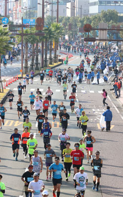2021/12/14県内一般ニュース宮崎市で12日に開かれた第35回青島太平洋マラソン(国際青島太平洋マラソン大会実行委、宮崎陸上競技協会主催)と第30回視覚障害者マラソン宮崎大会(同)。ランナーは走れる喜びをかみしめながら懸命にゴールを目指し、大勢のボランティアは大会を成...