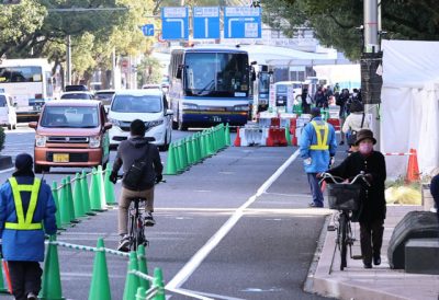 歩行者と自転車、通行空間大規模実験 宮崎市高千穂通り