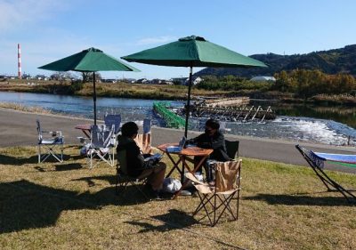 くつろいで鮎やな鑑賞 国交省など実証実験 河川敷に机と椅子 延岡