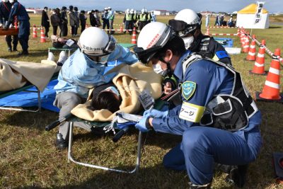 航空機事故 連携を確認 県警など 負傷者想定訓練