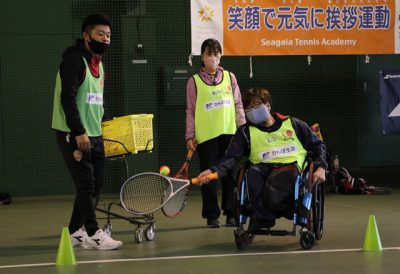 2021/11/24県内一般ニュース車いすテニスの体験会とスキルアップ講習会は23日、宮崎市のシーガイアテニスアカデミー屋内コートであった。県内外の健常者と障害者約40人が、実際にプレーして魅力に触れた。 県車いすテニス協会が競技普及を目的に行った。体験会には車いす...