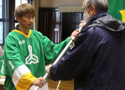 2021/11/19一般スポーツ国民体育大会冬季大会の予選となる九州ブロック大会(12月4、5日・福岡市)に挑む成年男子アイスホッケー本県選手団への団旗授与式は18日、県庁講堂であった。来年1月に栃木で開かれる本大会を目指し、選手は全力プレーを誓った。 団旗が、...