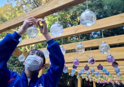 2021/11/05トピックnews小林市の霧島岑神社に8月に設置されたオブジェ「良縁のみち」が2日、風鈴から小林高生ら製作のハーバリウムに模様替えされた。ドライフラワーを入れた球形の飾りが光を受けてきらきらと輝き、境内を彩ってる。 探究科学コースで地域活性化に取り...