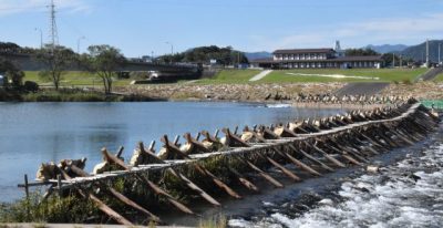 300年の伝統「鮎やな」設置 延岡・大瀬川