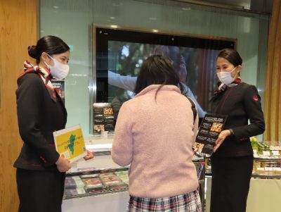 2021/10/22トピックnews日本航空(JAL)の客室乗務員でつくるJALふるさと応援隊の本県担当者が22日から、東京都・新宿駅南口にある県のアンテナショップ「新宿みやざき館KONNE」で食や観光のPR活動を始めた。24日まで本県出身者やゆかりのある8人が交代で店頭に...
