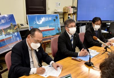 2021/10/21トピックnews宮崎―神戸航路を運航する宮崎カーフェリー(宮崎市、郡司行敏社長)は21日、建造中の新船「たかちほ」が来年4月15日に就航すると発表した。ポスターやオリジナルのテーマソングも作成し、新船の就航をPRする。 就航は当初、来年5月を予定...